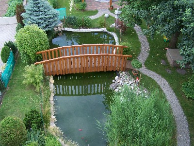 Der Gartenteich beinhaltet ca. 20000l Wasser und wird mit einer Oase Aquamax 10000 sowie einem Oase Biotech 10 mit Oase Biotron 25 UV Klärer gefiltert.
